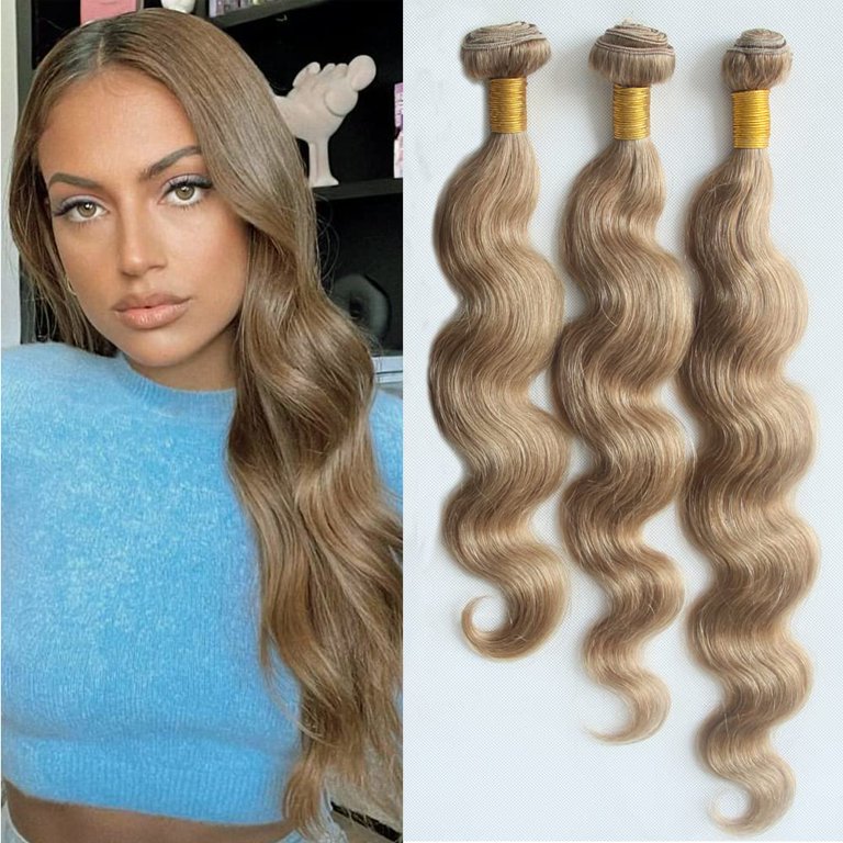 8a Machine Double Weft Honey Blonde Light Brown 8 Body Wave Raw Brazilian Virgin Human Hair Extensions 3 Bundles 18 20 22 Walmart Com